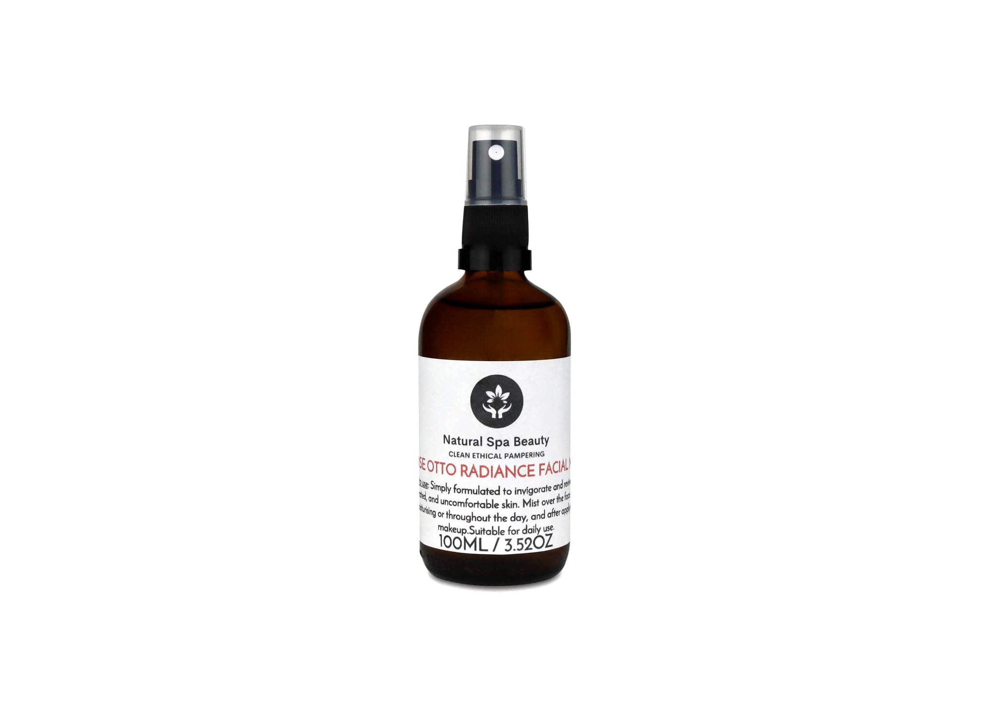 Glass Spray Bottle: Refillable amber glass to protect light‑sensitive botanicals.